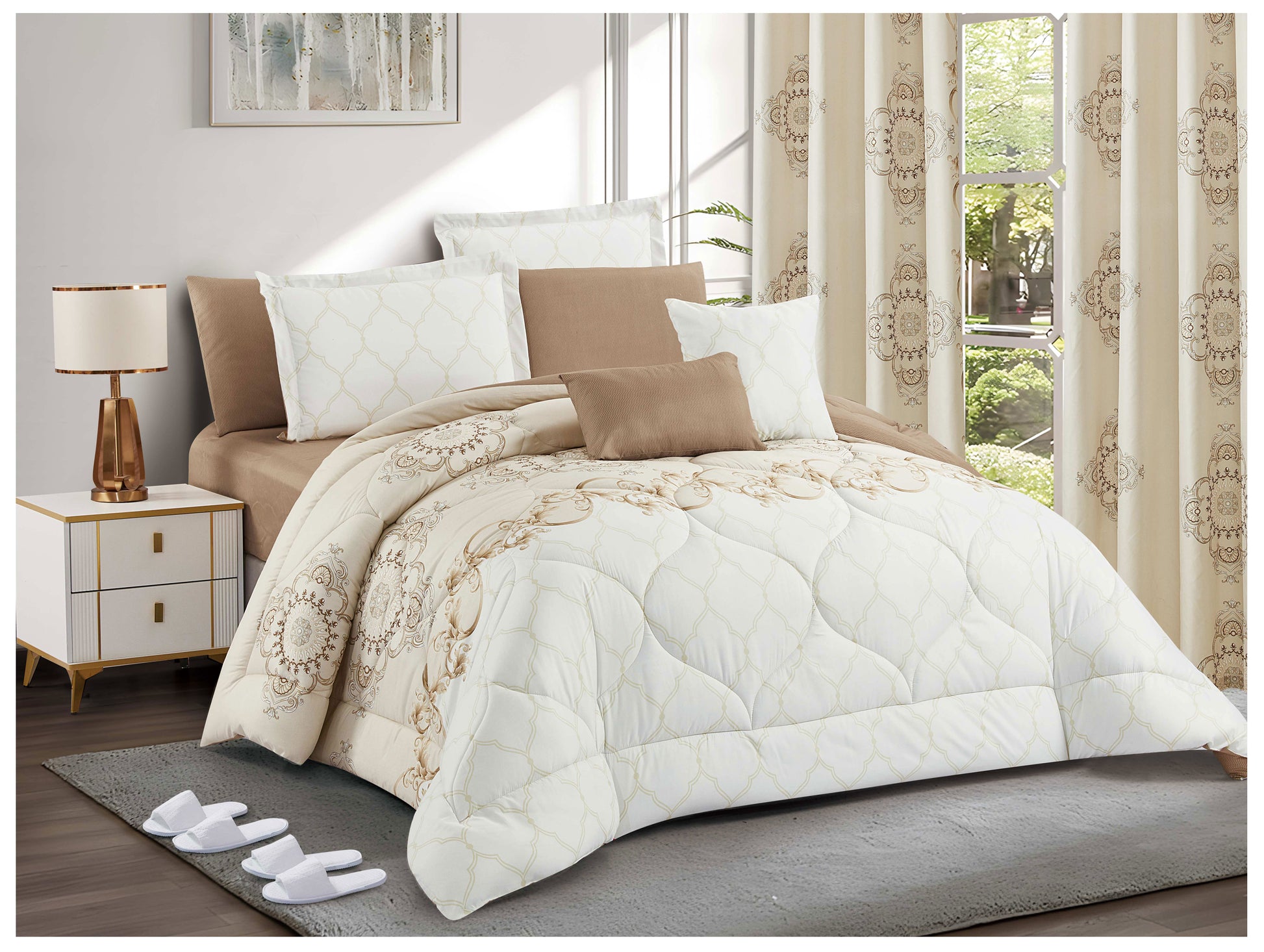 Crafted from premium microfiber, this comforter set offers soft, breathable comfort ideal for warmer months. The lightweight construction promotes airflow to keep you cool during summer nights, while maintaining cozy warmth when temperatures dip slightly. The silky-smooth fabric feels gentle on the skin, adding a touch of quiet indulgence to your nightly routine. Its hypoallergenic properties and durable weave ensure comfort that lasts season after season. This balance of cool breathability and soft warmth makes it an essential bedding set for anyone who values effortless comfort and restful sleep.