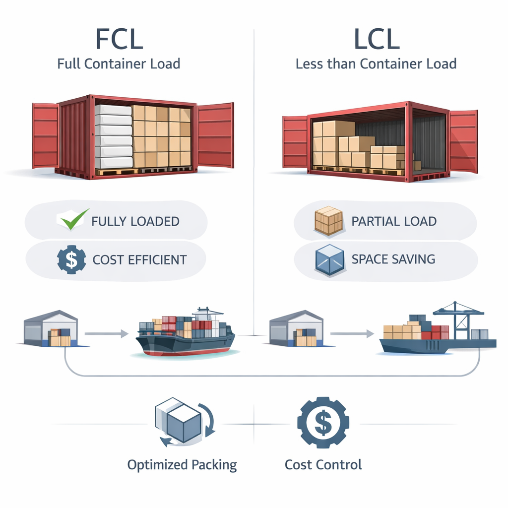 - FCL (Full Container Load) for large-volume orders
