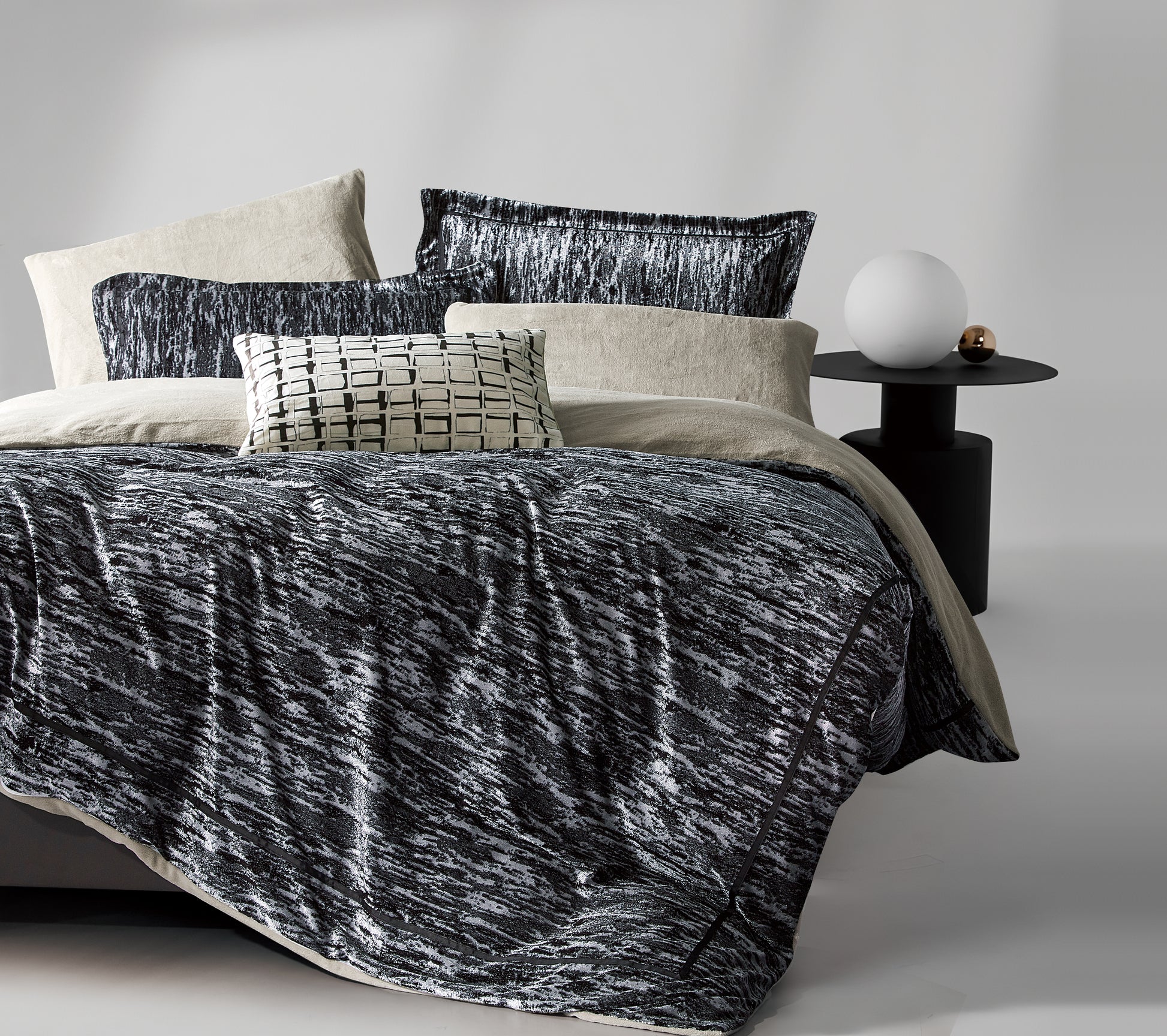 7-Piece Comforter Set, Abstract Gray and Black Design, Includes Comforter, Pillowcases, and Cushions