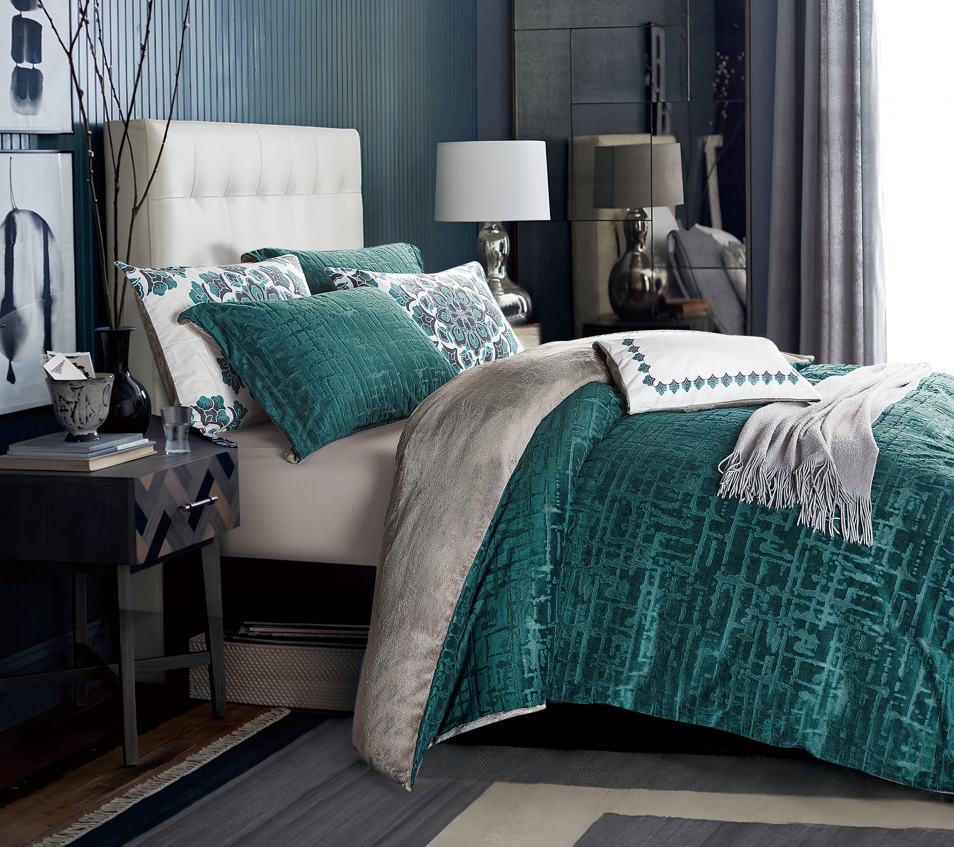 This 7-piece comforter set combines vibrant colors and contemporary elegance. Made from soft and durable material, the set includes 1 comforter, 2 pillowcases, 3 cushion covers, and 1 sheet. The green and gray design with floral details and textures adds a sophisticated and modern touch to your bedroom. The pillowcases and cushions complement the set with decorative accents that enhance the freshness of the room. Easy to wash, durable, and perfect for all seasons.