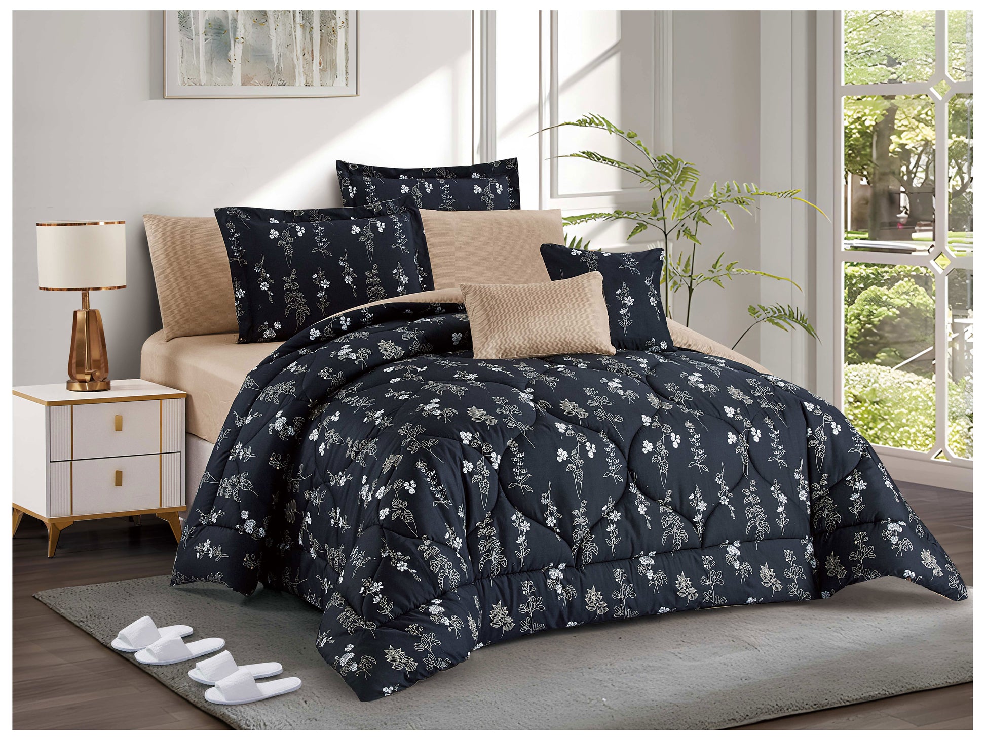With its sleek black tones and understated floral design, this comforter set adds depth, warmth, and refinement to any bedroom décor. The neutral palette makes it ideal for pairing with beige, gray, or wood finishes, while the floral print introduces a hint of natural beauty. Whether styled in a modern apartment, master bedroom, or guest suite, it creates an atmosphere of comfort and elegance. Designed to suit every season, this set offers the perfect mix of modern sophistication and cozy charm that never goes out of style.