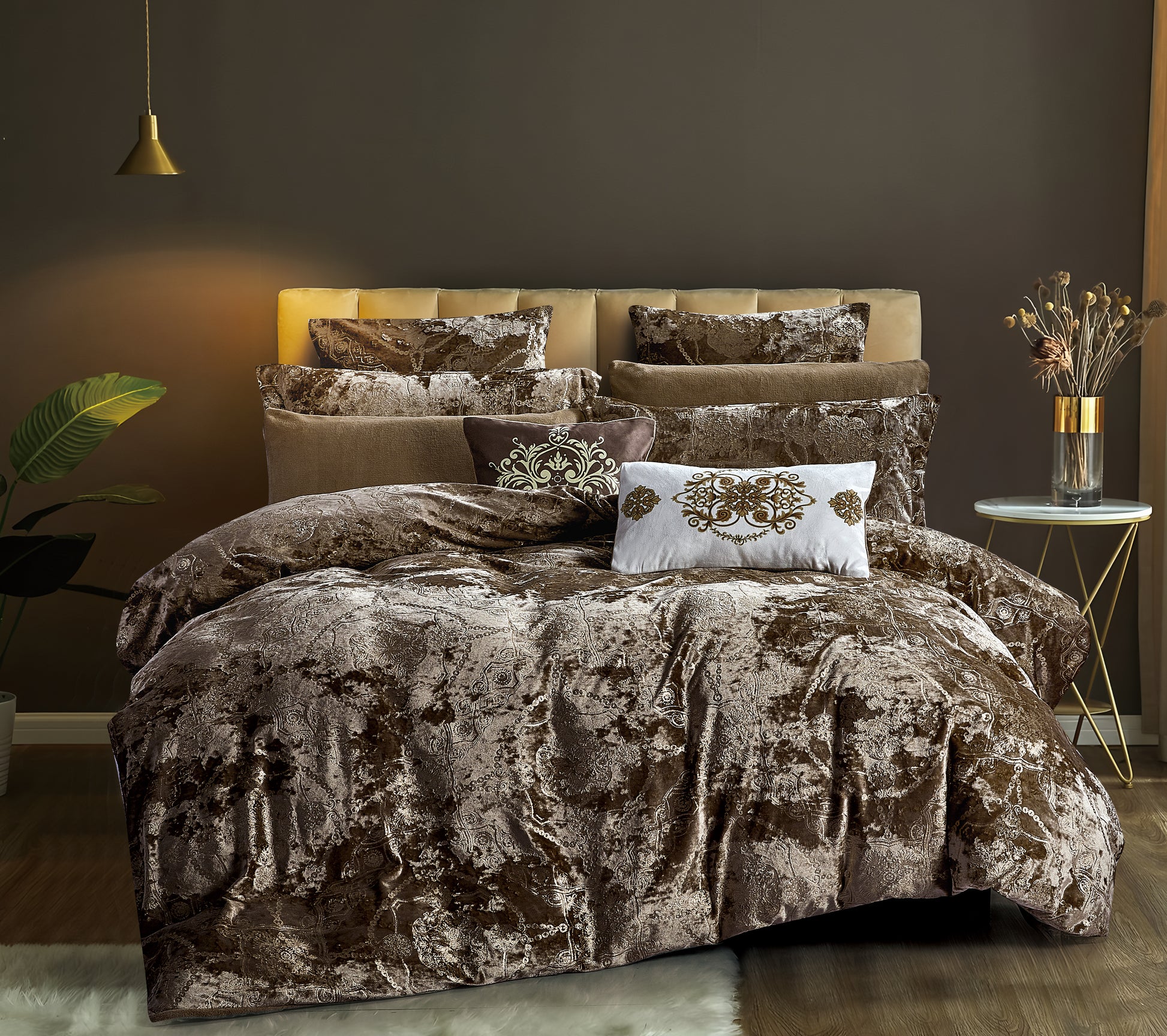 Luxury 7-Piece Comforter Set in Brown Tones, Pillowcases and Decorative Cushions