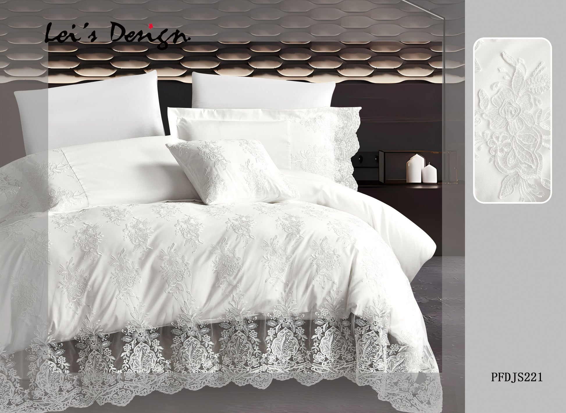 Lace Embroidery Design – Beautiful floral lace detailing along the duvet and pillow edges adds an opulent touch to your bedroom décor.